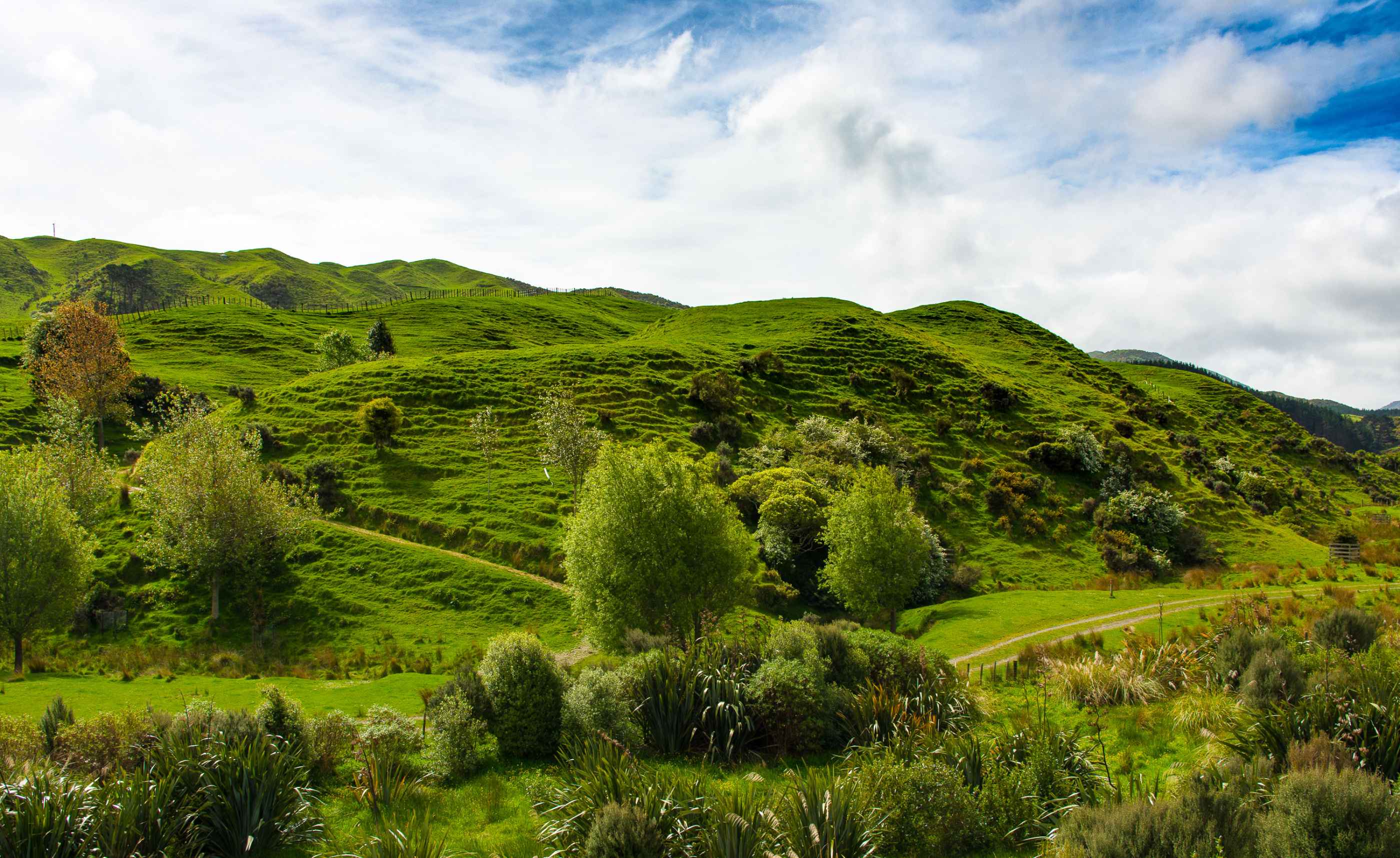 On s'y croirait dans la Comté !! Il suffit d'un brin de soleil sur ces petites collines pour qu'elles se teintent d'un vert absolument incroyable. Il n'y a qu'en Nouvelle-Zélande qu'on peut voir ça ! (Naaa, sûrement en Islande aussi )