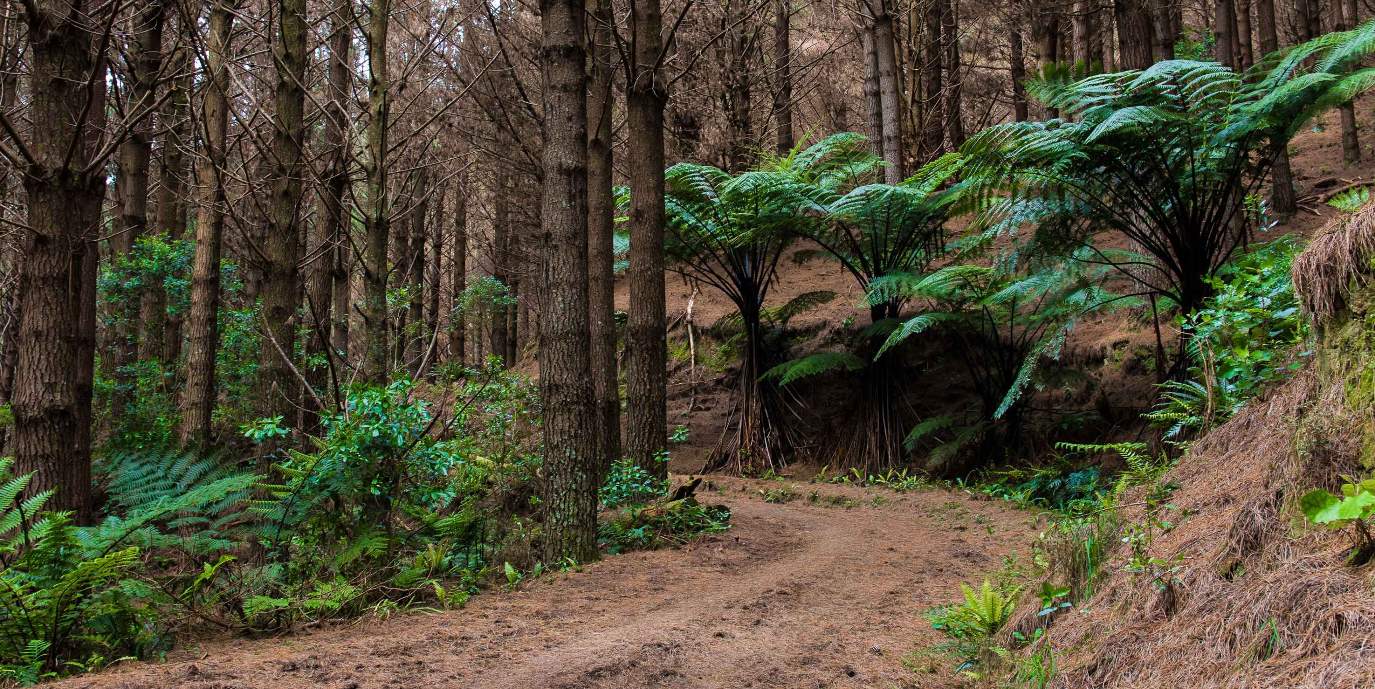 La voilà, la forêt de pins ! Un peu dégarnie quand on y était, mais les fougères géantes étaient là pour habiller un peu tout ça ! Le chemin grimpe gentiment, tout en douceur pour te permettre de ne pas suer comme un phoque et avoir une conversation avec ton compagnon de l'aventure - si t'en as un.