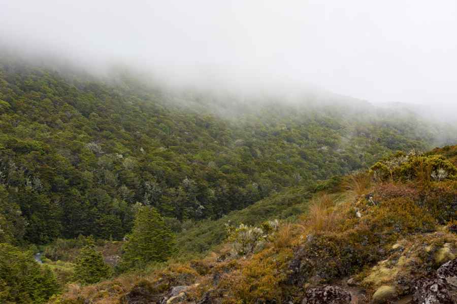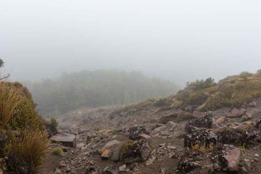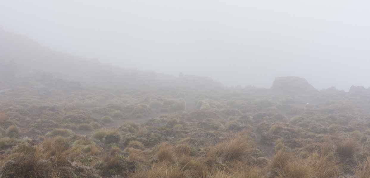 Dernier jour de cette great walk ! On quitte la forêt pour retrouver les plaines ancestrales qui bordent les volcans. Le soleil était au rendez-vous, mais assez timide pour ne pas nous brûler la gueule, c’est bien.