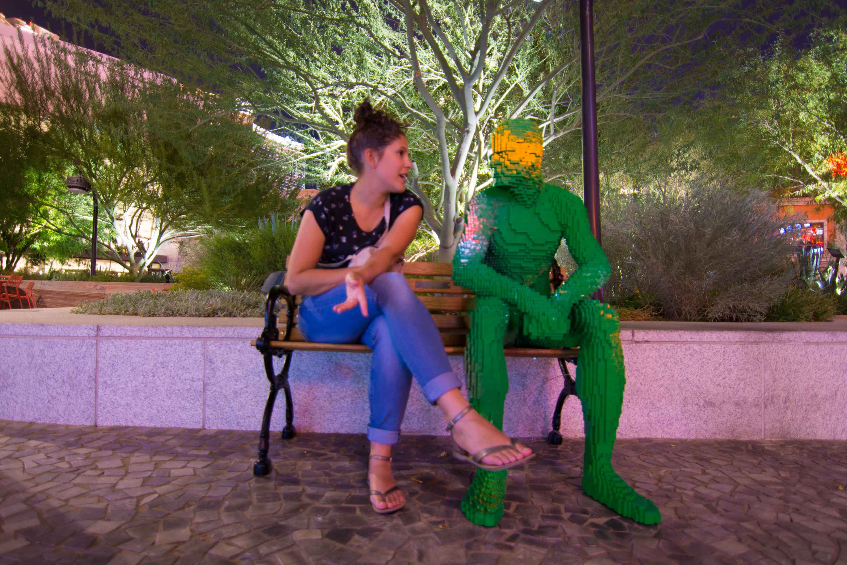 - Le Monte Carlo, vu du"Park", avec ses Lego-men disséminés un peu partout sur des bancs.